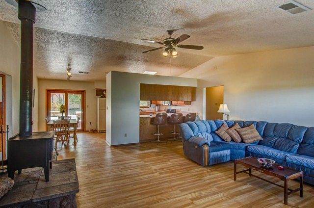 Nestled in a quaint mountain valley, enjoy peaceful country living that's just 20 minutes to ABQ & an easy commute to Santa Fe. This home has a fabulous layout, stunning patio & raised deck, oversized garage with workshop, & fully fenced with multiple gates for access. Nice separation of master suite from bedrooms. Soaring vaulted ceiling & rustic wood burning stove in the great room. Huge laundry room. All appliances, gazebo & shed included. Fruit bearing cherry trees right outside the front door. All the convenience of City Living with COMMUNITY WATER, HIGH SPEED INTERNET in a serene mountain setting. Great local shopping, restaurants & I-40 access less than 5 minutes from home. Breathtaking views of the valley, Sangre de Cristo Mountains & star-filled night skies.