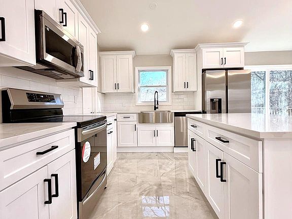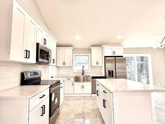 - Description: Brand-new white cabinetry, subway tile backsplash, and a full suite of appliances.