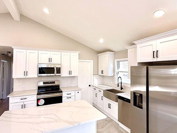 - Description: Brand New Chef's Kitchen Featuring stunning quartz waterfall island, vaulted ceilings, and stainless steel appliances (Including Dishwasher)