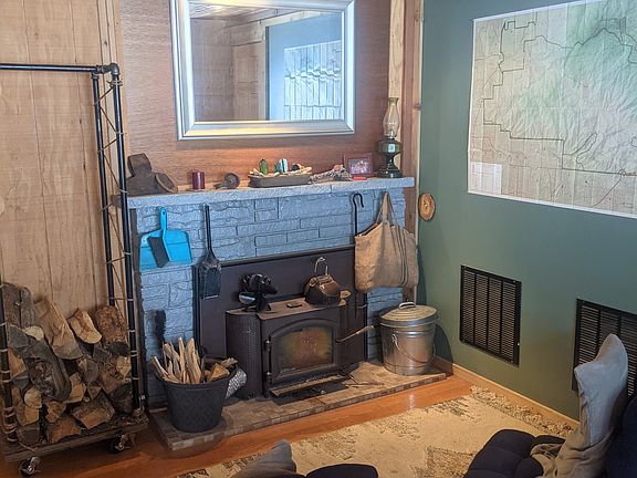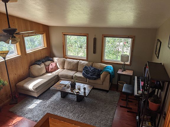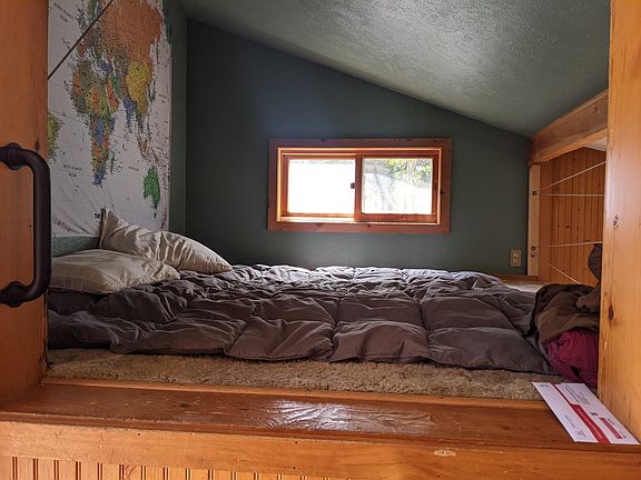 Adoreable 2 bed, 2 bath for rent on an acre with beautiful, private outdoor spaces. Split level home - 1 bedroom with ensuite bathroom on upper level and a separate bedroom and bathroom on lower level! Bonus loft above living room as well! Upstairs wood stove is primary heat source, with supplemental gas stove downstairs. W/D included. Prefer to rent mostly furnished but open to unfurnished. House is located on a very steep, narrow road. 4WD or AWD and snow tires/chains MANDATORY for winter. The uphill neighbor takes care of snow removal but tenant is expected to compensate him for his time. Year lease. No cats, well behaved dog will be considered with additional pet deposit. House is on a well. Renter is responsible for paying gas, electric and internet (fiber, $80/month), as well as obtaining firewood to heat house.