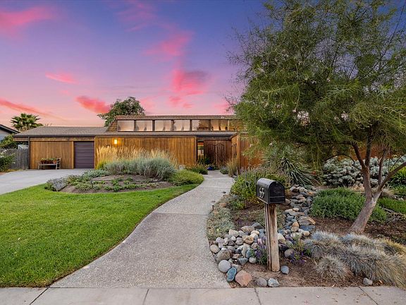 Nestled in Walnut Ranch Estates, this 1970 Mid-Century Modern home offers 1,712 sqft of inspired living space, including 3 bedrooms, 2 bathrooms, an office, and multiple courtyards & outdoor living areas. Inside, the home embraces clean lines and organic materials: floor-to-ceiling windows, raw wood walls and doors, exposed beams, cured leather-stained concrete floors with wood inlays, and a striking hearth fireplace with built-ins and storage throughout. Off the kitchen is a closed-in atrium and courtyard blur the line between indoors and out, creating a tranquil extension of the living space. The kitchen and bathrooms have been thoughtfully remodeled, with Kitchen Aid and Thermador appliances, Quartz counters and updated tile, blending modern functionality with a style that honors the home's mid-century character. Every cabinet and nook have a specific purpose and fluid design for a highly organized and functional lifestyle. Step outside into a true sanctuary masterfully landscaped by dedicated gardeners, offering abundant plantings, curated beds, and natural beauty designed to evolve with the seasons. With its distinctive architecture, seamless indoor-outdoor connection, and lushly designed gardens, this home is a rare find in one of the area's most desirable neighborhoods.
