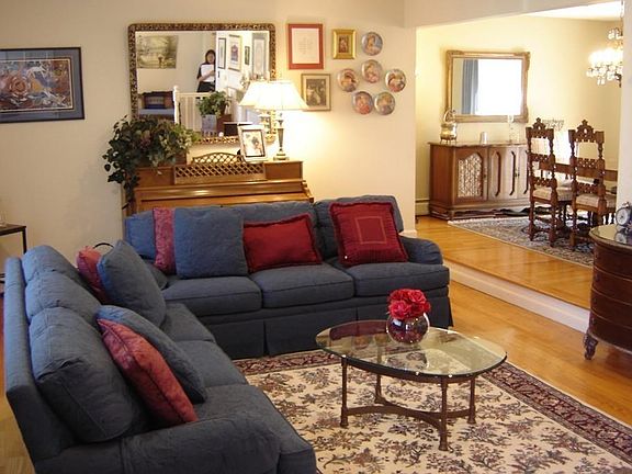 Very well maintained home in superb location close to the center of town and schools. Features 8 rooms, 4 bedrooms, 2 1/2 baths, gas heat and central air conditioning. The light and bright kitchen has an open plan with a large center isle and a good-sized dining area looking out to a private back yard. All the bedrooms are spacious and have ample closet space. The main bathroom has been remodeled. This home also has vinyl siding, a formal dining room with a slider to a multi-level deck, and sprinkler and alarm systems. You'll love the family room with its newer wall-to-wall carpeting, raised hearth fireplace, plus a large flat-screened TV which is being left for the buyer's enjoyment. Most windows have been replaced with double-pane energy-efficient windows and the fenced yard is professionally landscaped. A lovely home!
