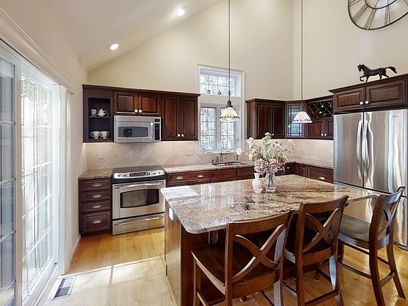- Features: Cathedral Ceiling(s), Flooring - Hardwood, Balcony / Deck, Pantry, Countertops - Stone/Granite/Solid, Kitchen Island, Cabinets - Upgraded, Recessed Lighting, Stainless Steel Appliances