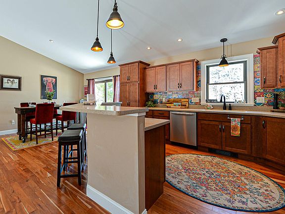 This 2016 home features three bedrooms and two full bathrooms with an open concept living space. The main level has hickory hardwood floors with a tiled entry and slider to the deck. The kitchen offers stainless steel appliances, and a large island with seating. Private master bedroom en-suite with a walk-in closet. The finished daylight basement is great additional space for a family room with wood stove and a bonus room with built-in cabinets, desk and counters. The heated 2 car garage with an extended bay offers ample space and storage. There is a large fenced in yard with access off deck, fenced in garden, fire pit, & extra flat parking in the gravel area. Newly installed full house water treatment system (2022). Easy access to outdoor recreation from the front door which includes hunting, fishing, hiking, and snowmobile trails. All of this with beautiful, seasonal views of Sabattus Lake from the back deck!