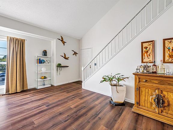 - Features: Floor Covering: Wood Veneer, Wall Covering: Some