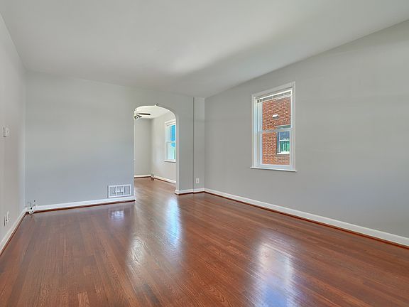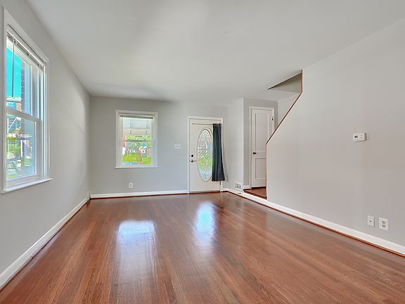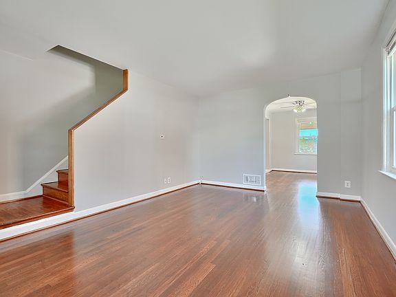 3 BR 1 BA updated home that is end of group. Fresh paint w/ neutral color. Hardwood floors were just redone and look brand new. Nice size yard. The entire yard is fenced. Covered front porch. New countertop in the kitchen, stainless steel appliances, tile backsplash, and plenty of cabinets. The kitchen leads out to a rear balcony that has a wonderful view of the cityscape. Separate dining room with hardwood floors. Lots of natural light. The 3 bedrooms on second level all have beautiful hardwood floors. The bathroom has been updated and has gorgeous tile around the tub. Lower family room could be used as a TV room. Separate laundry room with washer and dryer. Walkout basement. Plenty of storage. New roof and new windows. Close to 695, 95 and walking distance to the bus line. Renter is responsible for all utilities. Pets are case by case basis (30lb or less).