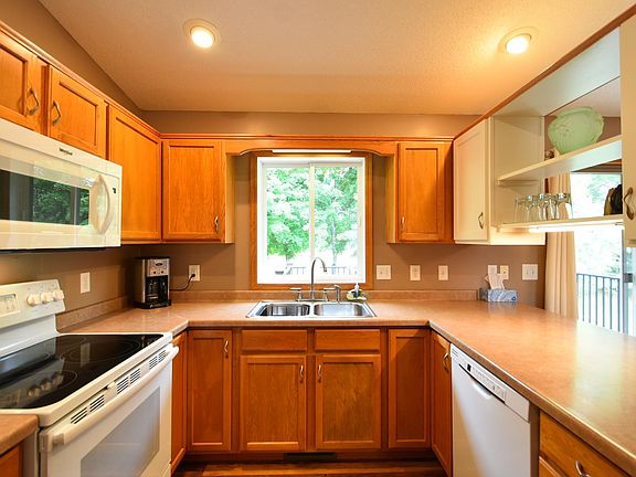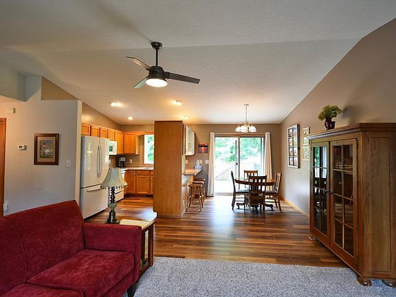 Quite location in a small town. This pre-inspected 4-bedroom 2 bathroom fully finished home features, vaulted ceiling, open floor plan, updated LVP flooring in kitchen and dining room, lower-level owner's suite with walk-in closet and private bath including Soaker tub and separate shower and more. Exterior presents mature trees, garden shed with electrical, stunning landscaping, maintenance free siding, 2 stall attached garage and enjoy and entertain your guests on your maintenance free deck.