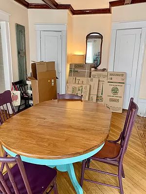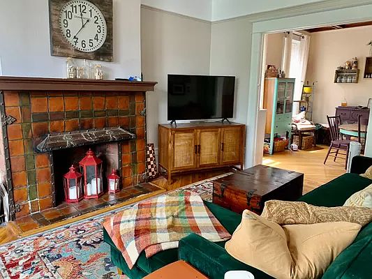 Extra Spacious and loaded with charm! This unit occupies the entire 2nd floor of a well kept house on a tree lined block. Spacious separate dining area with coffered ceiling, living room with beautiful non-working fireplace. Home office area, which can be used as a bedroom, leads to a private terrace. The kitchen is large and will fit full size table, has a dishwasher and window. Kids room is large enough for a bunk bed or two small beds. The master bedroom can fit a king size bed and is attached to a sitting area which can easily be used as a nursery or second home office. Updated bath with tub, good closet space. Sorry no pets allowed. You will in walking distance to shops and restaurants. Midway between two train stops on the R train. You must have excellent financials and income at least $ 110K Available for July 15th move in