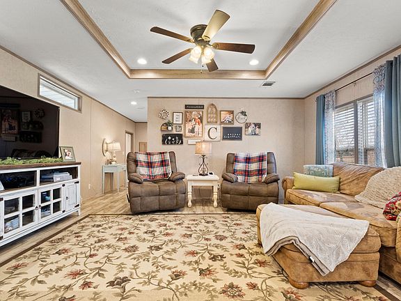 MUST SEE!!! This Custom-Built 2017 Mobile Home is in IMMACULATE condition, offers three very spacious bedrooms, two baths with a soaker tub and walk in shower in the owner's bathroom. The huge, covered back porch is perfect for entertaining or simply relaxing and enjoying the view of the pond in the back. As an added bonus there is a covered shed with a concrete slab that's great for storing all your yard equipment.. All of this is sitting on just under 5 Acres of land and is ready for new owners!! Call today for your showing.