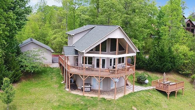 Prow front 3BR/3BA chalet on 2.28 acres w/an almost unheard of 3 car garage AND views. This home is for comfortable living & memory making in the mountains. The sizeable kitchen has room for multiple cooks & opens to the Great Room w/stone fireplace. Windows, windows & windows to take in those views & doors to step out & enjoy the wonderful decks. Large loft currently used as MBR retreat. Two BAs w/marble showers. Full finished basement is open concept bedroom guest suite & a walk out onto stone patio. Enjoy the amazing views from an observation full sun deck or one of the deck/porches. Plenty of drive parking & maneuvering to & from the 3 car detached garage. Grab this one fast!