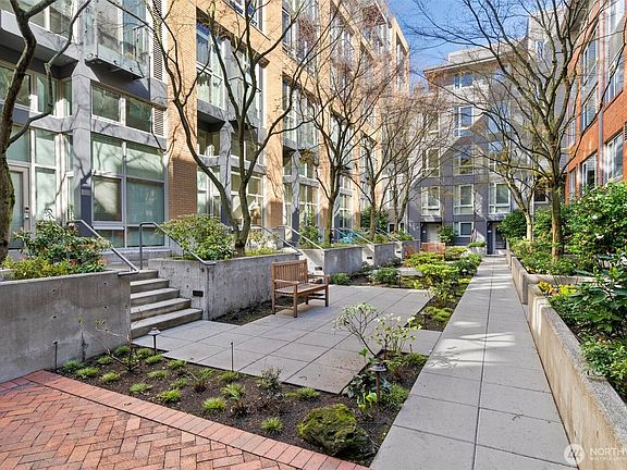 ** Seller financing ** Welcome to the BRIX condos! This quiet ground-floor loft unit features its own entry from serene court yard along with abundant natural light. Soaring 15' ceilings, art-gallery walls, and expansive windows create a bright, airy feel. The chef’s kitchen boasts a gas range, stainless steel appliances, and a rolling prep island. Upstairs, the primary suite includes a walk-in closet and private bath. Step outside to enjoy coffee in the lush courtyard or entertain on the expansive roof deck with city and partial water views. Includes oversized garage parking and storage. Steps from top restaurants, nightlife, shops, Volunteer Park, light rail, and more—all within a very secure building. Don’t miss this gem!