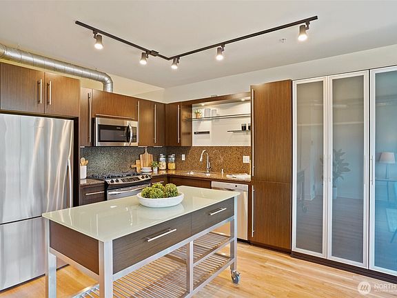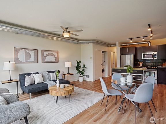 Welcome to the Brix – sophisticated & modern, it's Capitol Hill’s most sought after residences. This west-facing home is light-filled & features brand-new LVP flooring, new carpet & fresh paint throughout. Plenty of storage w/ walk-in closet, pantry, coat closet & custom built-ins w/ add'l closets & entertainment center. Full bath w/ oversized soaking tub. Secure garage w/ designated parking + storage unit. The rooftop deck offers sweeping city & Mt. Rainier views, community garden, lounge areas, fire pit, BBQs & pizza oven. With a Walk Score of 97, it's just a short stroll to cafes, dining, shopping & vibrant nightlife. About 3 blocks to Light Rail & Volunteer Park. Pet-friendly, well-managed & funded HOA, w/ on-site manager. A must see!