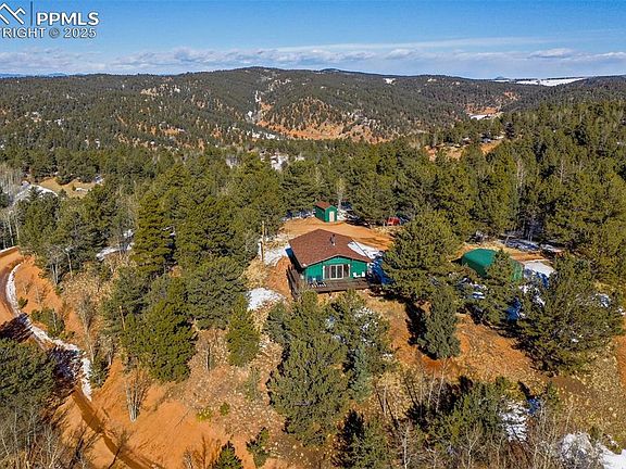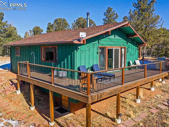 The hideaway you have been looking for is here! Whether you are looking for a full-time home, a personal get away or a short-term rental with income potential, this is the home for you. Nestled on three acres with ultimate privacy, this 2 bedroom, 1 bath home is brimming with mountain charm. All living areas are on the main level. The living room, dining and kitchen all have mountain views and walk out onto a beautiful wrap around deck which will be your favorite place in the summer! With vaulted ceilings this area feels spacious and easily accommodates guests and family. In the summer your guests can spill out onto the deck for barbecues and good times. There is a bonus area in the basement which can be used for a myriad of things. A man cave, bonus game room, storage, etc. Also in the basement is a new laundry room area. There is a one car detached garage, and an ample storage shed also on the property. This property is perfectly located near Muller State Park and the Crags Trail for hiking along with fishing at Skagway Reservoir nearby. For entertainment and dining you and your guest can make the short drive to Cripple Creek to enjoy casinos, live plays, and multiple options in dining. Woodland Park is only 30 minutes away and Colorado Springs is just over an hour. If you are a winter sports enthusiast, skiing is less than two hours away in popular Breckridge, CO. Begin the journey to owning this gem by scheduling a showing today!