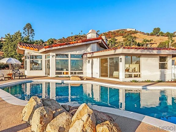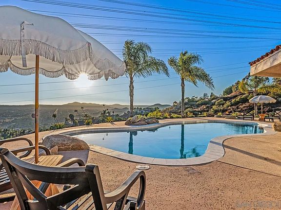 Seller to cooperate with below market financing! Breathtaking panoramic views from almost every room of this spacious single story custom home, set on an elevated 4 acre lot in the premier neighborhood of Shadow Mountain Ranch. Exemplifies elegance and sophistication, offering unparalleled blend of luxury and privacy. Beautifully designed kitchen overlooks the pool, spa and the incredible view, boasting large island, 2 ovens, slide in range, pot filler, refrigerator, wine chiller and large walk in pantry. Stunning wood beamed ceilings warmly welcome you into the oversized living room with beautiful chandelier and stone faced fireplace. Private primary suite with spectacular evening views, a walk in closet, soaking tub, dual sinks and shower heads, bidet toilet and a second refaced fireplace. While capturing the colorful sunset views, take a dip in the sparkling pool or unwind in your oversized private spa. Both are renovated with new pebble tech, tile, coping, pool equipment and heaters. Dont miss this opportunity with a multitude of renovations including fresh paint, new flooring, cabinets, counters, sinks, soaking tub, shower surrounds, plumbing fixtures, light fixtures, water heaters, landscaping, resurfaced driveway, etc.. Plenty of room to add an ADU, play area or RV parking garage.