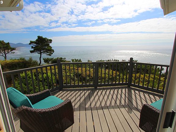 SPECTACULAR PANORAMIC OCEANFRONT view includes miles of whitewater, Cape Lookout, 3Arch Rocks. Great spot, just 30 yards to beach stairs/trail. Architectural design with artistic appeal, vaulted ceiling, fenced in yard, decks on 2 levels. Corner frplc, built-ins, jet tub, large laundry room, cooking island, oceanview from every room including 2 Ensuite Bdrms +den/loft. Quiet gated community The Capes, 90 mins to downtown Portland.