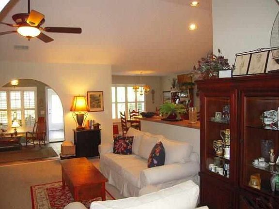 Come enjoy, relax and meet your neighbors, this home is ready for you. This beautiful home is situated on a premium lot, backs up to a Conservation Area that provides both privacy and a sense of country living. The fenced yard boasts a great view of Mother Nature, private dining & BBQ patio area and in ground fire pit for those nights under the stars. The front yard, side yards and backyard have a Raine Bird Irrigation System. Home was built by DR Horton, is the Beaufort Model, which features a large Foyer and has a split bedroom plan. You will love the arch ways in this model. The oversized master bedroom has a 12x10 Sitting Area, walk-in closet with a vaulted ceiling. Master Bath has a large step-in 5ft shower, double sink vanity with Cherry Cabinets, separate water closet and two linen closets. The main living area has a gas fireplace, vaulted ceiling and is an open plan to the beautiful tiled sunroom that look out onto your gorgeous 12x16 tiled screened porch for another great ar