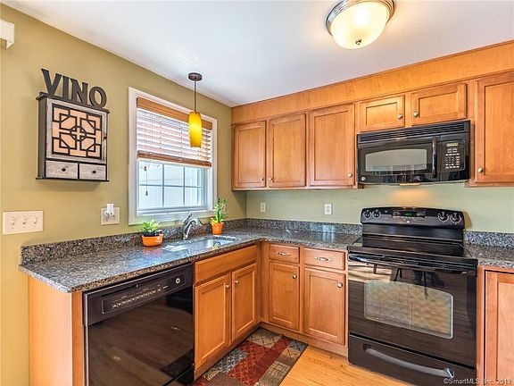 This is truly 'the one'. Completely updated unit in pet-friendly complex, lovingly maintained. Only one owner since it was built in 2009 Rarely available unit in pet-friendly complex in great location near highways, shopping, parks and restaurants only steps from downtown Wallingford pride of ownership is obvious at first sight with custom touches including neutral paint & hardwood flooring throughout, granite countertops and wood cabinetry. The open floor plan showcases the natural light pouring in through windows with custom venetian blinds. The added benefit of calming water views and the sound of a babbling brook can be seen from the back porch and windows. Half bath on the main floor for convenience and easy entertaining. Two spacious bedrooms in the upper level with ample storage. Additional storage available in attic and full basement. Save money with Wallingford's LOWEST ELECTRIC RATES in the state (and all electric fuel & appliances. This complex also offers low HOA fees which include amenities such as snow removal, trash & recycling, grounds maintenance, and bi-annual power washing and mulching. Own for less than renting and take advantage of all of the benefits of condo life without sacrificing quality, location, upgrades or style. This gem is sure to move quickly