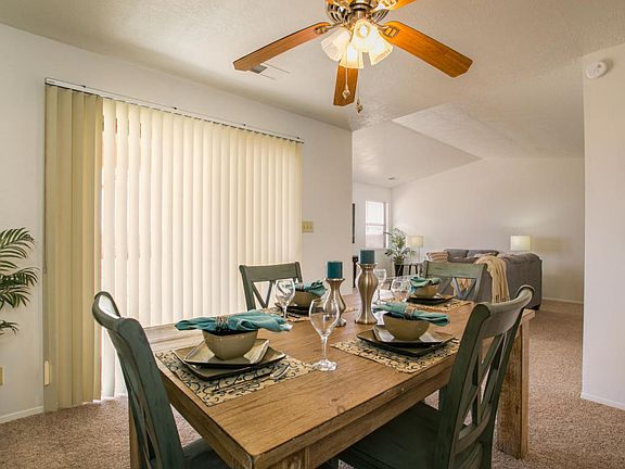 Leave the Landlord Behind - Stop renting and start building equity with this unique 1535 sqft, 4 bed, 2 bath, 2 car home in SW Rio Rancho. Great features include VEIWS of the Sandia Mts from the covered patio, master suite w/walk-in closet, casual living room, classic dining room, charming kitchen with breakfast area, secure back yard for the pups. Don't forget about the new paint, new carpet and NO POLY! Don't miss out on this one, Call to see it today!