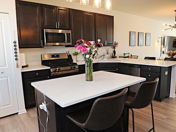 This stunning townhome is packed with upgrades! Featuring 3 bedrooms, 2.5 baths, and a 2-car garage, it offers plenty of space and modern amenities. The expanded living room boasts 9-foot ceilings and recessed lighting throughout. The gourmet kitchen includes 42-inch soft-close cabinets, quartz countertops, stainless steel appliances, a breakfast bar, a pantry, a spacious island, and ample counter space. Upgraded fixtures are found throughout, and there is a separate dining area for added convenience. The large master bedroom includes a walk-in closet, and the master bath offers a double vanity with a quartz countertop and a walk-in shower, plus a linen closet. The lower level features a rec room, while the large laundry room includes a wash tub. This home is equipped with a Ring Smart Home system, Moen Smart Water Meter, and Level Lock. Enjoy the outdoor space on the large balcony. No pets and no smoking allowed. Don't miss out on this amazing opportunity!