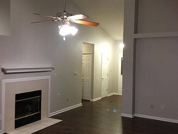 This beautiful 3 bedroom 2 bathroom home has a very functional floor plan with vaulted ceilings in the living room and master bedroom. The master bedroom is spacious and airy and includes a large walk-in closet. The master bathroom is en suite and has double sinks. The kitchen offers lots of space for storage and comes with a refrigerator, dishwasher, over the range microwave and flat-top stove. This home has a 2 car-garage and also includes a fenced in yard with no neighbor behind the property! Tenant responsible for all utilities. Washer and Dryer not included.