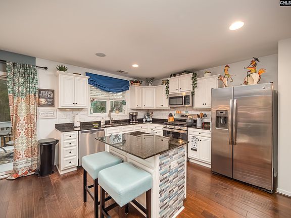 Well Loved and better than NEW! This home boasts many highly sought after details that make a house a HOME. This beautiful 4 bedroom 2 and a half bath home is loaded many timeless upgrades that include custom built ins, french doors, custom window seat, subway tile and plantation shutters just to name a few. New LVP, New rear fencing, New gas range, fresh paint, extended driveway and more. Main level flex space is ideal for the at-home professional AND with a custom Murphy-bed, it can double as extra resting place for guest. The oversized master bedroom grants not 1, but 2 walk-in closets, double vanities, soaking tub, separate shower and water closet. Other bedrooms feature walk-in closets and a roomy shared bath with dbl vanities. The rear yard backs up to wooded area of Crooked Creek Park. Look forward to the seasonal months ahead with the spacious grilling deck and outdoor fire pit area. Private, fenced in rear yard is sure to score big with kids, pets and adults too. Go ahead and start planning those family yard games like ladder golf, cornhole or yard yahtzee. Cul-de-sac located with green space to the left gives you a little extra privacy. Zoned for award winning Lexington/Richland Five and conveniently located in the heart of charming Chapin SC