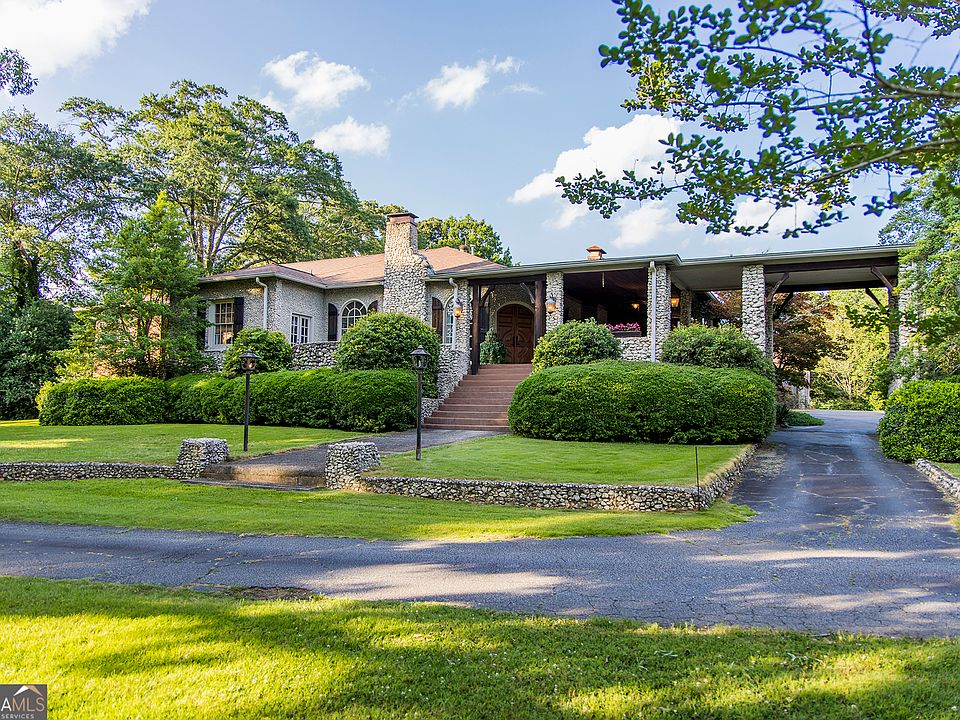 ABSOLUTELY BEAUTIFUL, one-of-a-kind 1917 stone home with guest house on an incredible, private 3 acre setting in Old East Rome! This completely custom-renovated one level home has an amazing double island kitchen with cabinet-front refrigerator, dishwasher and Viking Range with walk-in Pantry which opens to a large family room with stone fireplace. A charming living room with unique stone fireplace adjoins a large custom-painted dining room with an impressive cove ceiling. While the main house could have 6 bedrooms, two of these are currently being used as a home office and media room. The 2010 addition added three of these bedrooms, one ensuite full bath, and one ensuite jack and jill bath as well as a large laundry room and gift wrapping closet. The master bedroom has a fireplace and an enormous ensuite master bath with beautiful custom tile overlooking the backyard oasis! With close to 2,000 sf of covered outdoor living space (2014 addition/renovation) including front and rear porches, a well-equipped outdoor kitchen and sparkling inground, this home is perfect for entertaining or family time. A separate guest house (renovated in 2013) provides another 500 sf of living space - located poolside, it is perfect for entertaining!