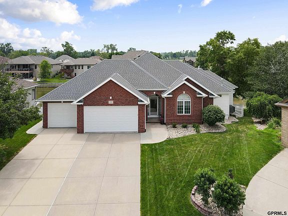 LAKE LIVING AT ITS FINEST!!! This beautiful 5 bedroom, 5 bath ranch style home is an ENTERTAINERS DELIGHT. Sip morning coffee off your deck with views of water and the Omaha skyline. This Home features an open floor plan, large eat in kitchen, master suite with two other bedrooms on main, gas fireplace, main floor laundry. Home has a large walkout basement, family room with gas fireplace with two additional bedrooms perfect for entertaining guest after a long day of Boating, Fishing, Swimming, Ice Skating, etc the possibilities are endless!! Fenced in yard, Composite deck and boat dock. Steps away from Shoreline Golf Course. Minutes to Airport, Event Center, University and Downtown Omaha. Make memories that last a lifetime in this spacious, beautiful lake home!