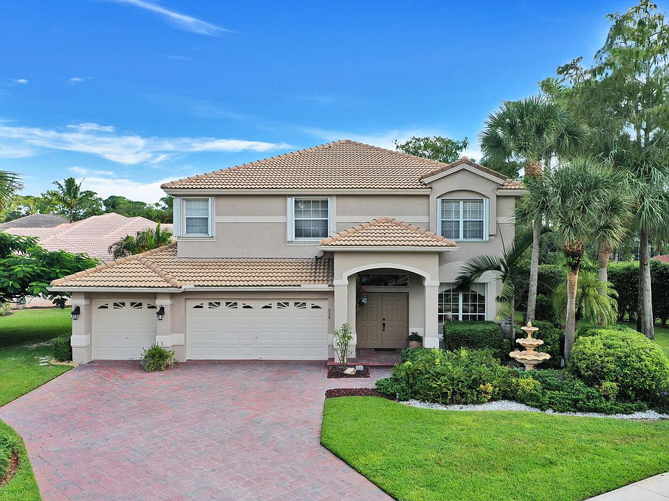 This stunning home will impress any buyer. Situated on a prime corner lot within a cul-de-sac, this home boast 3500sf under air.Upgraded features include water views, new exterior & interior paint, high end crown molding & baseboards throughout, new window treatments family room & kitchen.Spacious kitchen 42''raised panel wood cabinets,granite countertops & backsplash & waterfall edge, double oven, walk in pantry, updated Stainless Steel appliances, oversized designer kitchen sink & double oven, new microwave & pull out drawers on various cabinets. Bonus features include huge master suite w/extra room (possible 5th bedroom), central vacuum, laundry shoot, accordion shutters 2nd floor, hurricane panels for 1st floor, newly sealed paver driveway, alarm system & beautiful waterfall fountain. Gated community within walking distance to "A" rated schools.