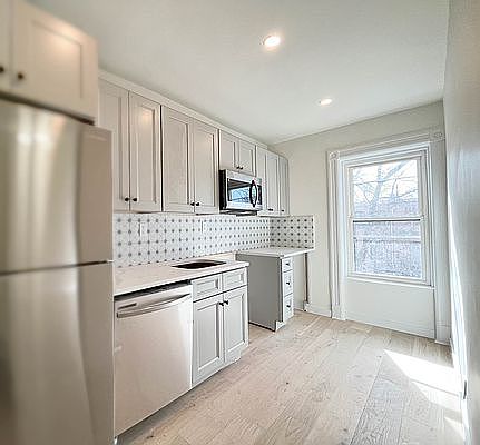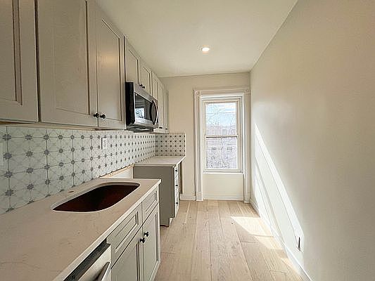 Newly renovated 1 bed 1 bath apartment with tons of natural light through the northern and southern exposure windows. The separate eat-in kitchen is equipped with brand-new stainless-steel appliances(including a dishwasher and microwave) and room for a small breakfast table while enjoying the southern exposure windows that beams with natural sunlight. The generous north facing bedroom, has 4 windows and can easily accommodate a king-size bed, a dresser and a separate area for seating or home office. The unit has split heating/cooling and also combo washer/dryer and a linen closet. This historic brownstone is located close to Bedford Stuyvesant Historic District, minutes' walk to the A/C train and within 30 minutes ride to Manhattan. Minutes' walk to Saratoga park, grocery stores, and local favorite cafe and restaurants.