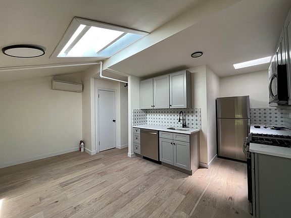 Available for Late August Move-In Located on the top floor of a charming brownstone, this bright and airy 2-bedroom, 1-bath apartment offers exceptional natural light with both northern and southern exposures plus three skylights, including one that beautifully highlights the open living and dining area. The updated kitchen is outfitted with stainless steel appliances, including a dishwasher and microwave, and flows seamlessly into the spacious living area, ideal for entertaining or relaxing under the oversized skylight. Both south-facing bedrooms are generously sized and can easily accommodate a queen bed, dresser, and desk, making them perfect for restful nights and productive days. Additional highlights include split-system heating and cooling, an in-unit washer/dryer combo, and ample storage throughout. Set in a historic brownstone near the Bedford-Stuyvesant Historic District, you're just minutes from the A/C trains (a quick 30-minute commute to Manhattan), Saratoga Park, grocery stores, and a variety of beloved neighborhood cafes and restaurants. Apartment Features: Stainless steel kitchen appliances Dishwasher & microwave In-unit combo washer/dryer Split A/C and heating system Three skylights Ample closet space Modern Spaces represents the landlord in this listing Application Fees: $20 per applicant credit check fee First month's rent One month security deposit *Images containing furniture have been digitally rendered using AI and are for illustrative purposes only. They are intended to demonstrate the potential use of space and do not reflect the actual furnishings or layout of the property.