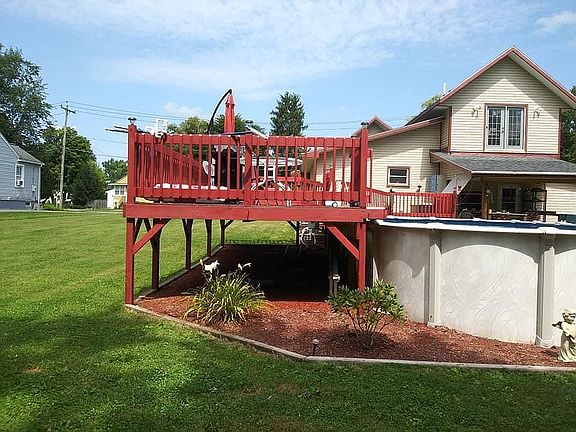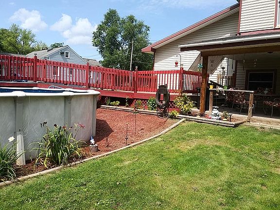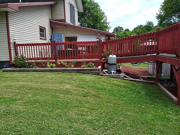 Three bedroom with sitting room, living room, kitchen and dining combination with 4x8 island with lots of storage, mud room, front foyer, 2 back decks with a bridge to above ground 15x30 pool and pool deck. Producing cherry trees, peach trees, kiwi, honey berry bushes, blackberry bushes and blueberry bushes. Electric upgraded 2013, new roof 2017. Storage shed.