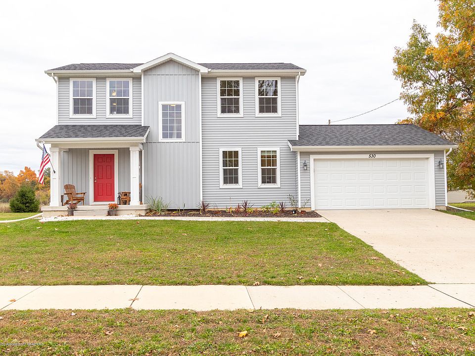 Welcome to 530 Doyle Rd. located in Laingsburg, MI. This beautiful home is 1,336 sq ft featuring 3 bedrooms and 2.5 baths. As you enter the home, you'll notice the welcoming living room, open floor plan, and modern feel with wood-look laminate flooring and recessed lighting. The kitchen is complete with stainless steel appliances, sleek quartz countertops, tile backsplash, and an eat-in dining area. From the kitchen is a half bath and a laundry room with upgraded washer and dryer. Upstairs, themaster bedroom houses a walk-in closet and master bath. Also, upstairs youAaall find the 2 additional bedrooms as well as the 2nd full bath. Off the dining area is a sliding door to the brand new, massive deck with built-in seating, perfect for big family BBQs or a weekend with friends. The home also features a 2-car attached garage. Modern and polished, don't miss out on this property! Call for a private showing today!