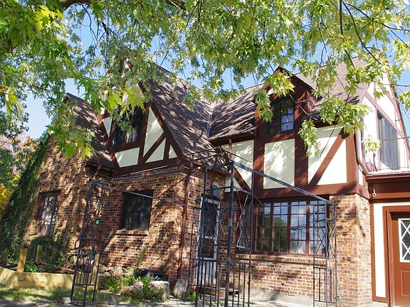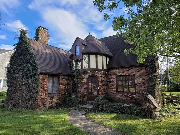 German Tudor home located on a corner lot near the stadium, lake, park & commercial district. With a traditional layout, you will enjoy all the space of a formal living room featuring a wood burning fireplace encased with marble & an oak mantle, stunning formal dining room, a casual family room, galley- style kitchen & a newly remodeled half bath on the first floor. From the beautiful front entry, take the original hardwood staircase to the second floor where 3 large bedrooms & a newly remodeled full bath are located. The master bedroom has double closets, plus a huge walk-in cedar closet with built-in drawers & a hidden safe room. The middle bedroom has double closets & picture windows so you can see the lake. Updates include new flooring downstairs (except for the family room), new kitchen countertops, backsplash & paint, new Marvin kitchen window and swirl glass bathroom window, some new lighting & the dishwasher was new in 2022. The furnace was installed in 2021. You will appreciate the unique details like the turret, double-Dutch door, built-in china cabinets, curved wooden entry door, hardwood floors upstairs and a laundry chute! Plenty of storage & space for a workshop in the unfinished basement. There is another half bath & utility shower in the basement. The garage used to be a carriage house, but industrial glass windows were installed allowing lots of light to enter and views of the backyard. Outside, there is a playset with a slide that needs some attention, but the kids would love it! Just in case of a power outage, you will be prepared with the 6500 portable generator that stays. Don't miss your opportunity to own such a nice example of German architecture in a central location. Call today to schedule your showing!