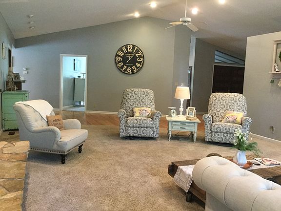 This spacious and inviting 5,500 sq. ft. 6 bed / 5.5 bath sprawling ranch located on a park-like 1.3 acre lot in Northeast El Dorado (only 3 miles from KTA exit) is the type of home dreams are made of! From the expansive living, family, and recreation rooms to the 43' x 21' swimming pool and pool house (both built in 2001); you, your friends, and your family will create lasting memories in this home for years to come! Perfect for entertaining, the openness of the living space flows perfectly into the 28' x 14' kitchen that is built for a crowd without giving up accessibility and functionality. The double front doors of the house open into a 14'x12' foyer with a stunning view of the 31'x18' living room, complete with an impressive stone fireplace, built-in shelves, and large windows and patio door facing the shaded back yard. French doors from the living room lead directly to the 28'x14' family room with another wood-burning fireplace! This extremely desirable home also features a smart bedroom and bathroom layout, master bedroom with access to a private deck and outdoor space, office with outdoor access, 15'x10'6" main floor laundry with counter space and custom cabinets, mud room, finished basement with fifth and sixth bedrooms and large versatile rec room, three car garage, and tons of storage space! The outdoor space boasts a private irrigation well which services a 15-zone sprinkler system, over fifty mature trees providing shade at all times, a 32'x20' composite deck with gas hookup for grill, two storage sheds, and a wooden playground for the kids!
