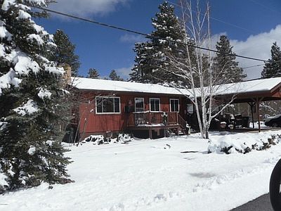 Single level year round home on a large corner all cabin lot. This home offers outdoor living at its best. Fenced in yard with mature fruit trees, blue spruce and aspens surround this cozy home. Double size carport, covered porch for summer living, large lighted shed, newer appliances, newer roof, gas stove insert in fireplace for those cozy cold nights. Home is clean and ready for your offer.