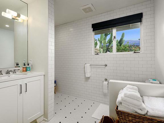 The ensuite master bedroom with a California king bed has its own deck and outdoor bathtub that provides stunning views of the Channel Islands and sunsets at night.