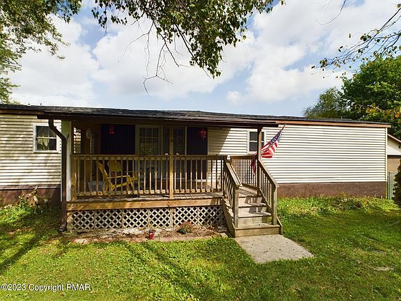 Well maintained singlewide mobile home on over 1 acre of land. Home features a covered porch, kitchen with laundry room. Dining area features built-in office space. 4 bedrooms, 2 full baths. Outside features include large fenced in front yard, ample parking with long driveway, and a HUGE garage with a workshop. Home needs some TLC but is move in ready, waiting for the next owners to come and enjoy making memories. Close to Pocono Raceway, hunting, fishing, outlet shopping, casinos, hiking. Make your appointment today.