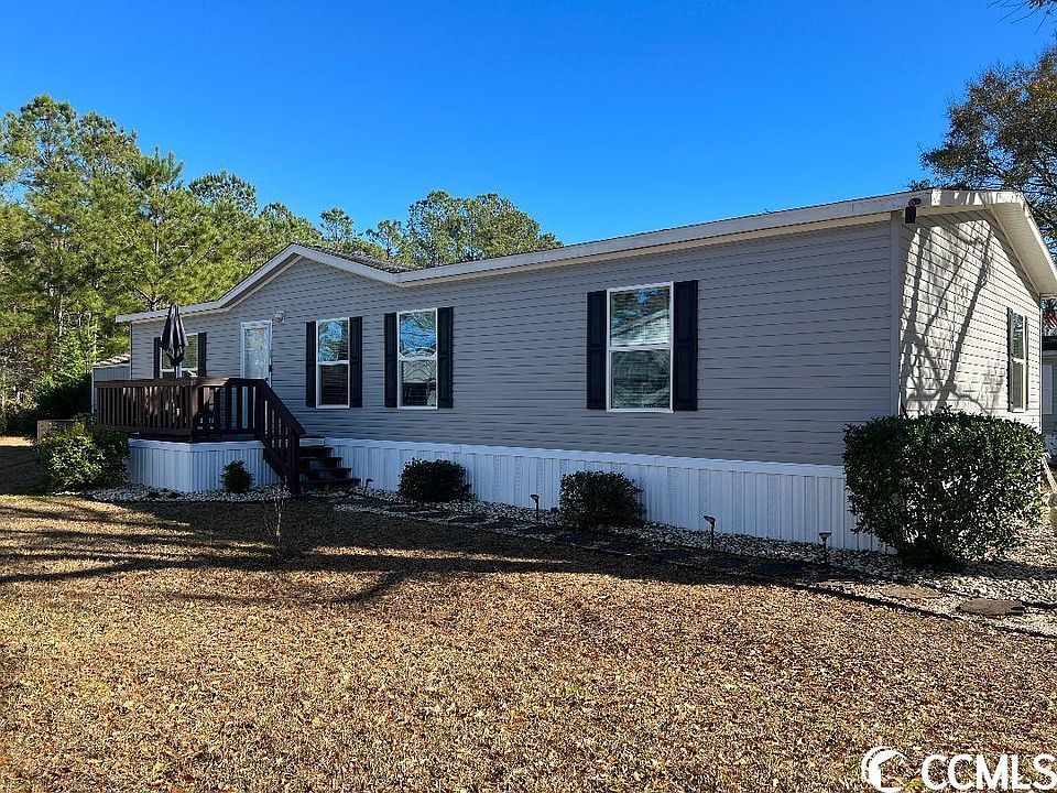 Lovely and well cared for three bedroom, two bath home at Folly Estates. Open and spacious floor plan in this 2015 Clayton model home. Add a nice, quiet neighborhood with friendly neighbors and you can't ask for much more. But there is more! This home features a large kitchen with plenty of storage space, range hood, and center island/breakfast bar. This is a great kitchen for meal prep and entertaining. Crown molding and chair railing in the kitchen, living room, and dining area. Living room is roomy enough for a large TV and plenty of space for your furnishings. The three bedrooms all feature walk-in closets, and the master comfortably fits a king size bed with plenty of room to spare. Master bath has a double sink, shower and tub. There are two additional bedrooms that are a nice size for guests or family. Carpet was upgraded in 2018, and this home features tilt windows. This home also features a large washer/dryer room, whole house ventilation, and generator hook-up with generator conveys. Outside has a large gazebo and storage with electric installed. There are plenty of landscaping accents on this nice size lot that backs to the woods. This home is close to schools, medical care, shopping, entertainment and the airport. Great home, great price, call me today.