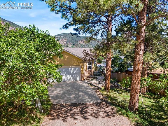 Wonderful ranch home near the foothills of Palmer Lake tucked behind Pine Crest on a quiet cul de sac. Enjoy the gas log fireplace on chilly winter evenings. Oak hardwood floors throughout the great room, kitchen and bedroom #2 on the main level (refinished in 2022). Main level primary bedroom with adjoining bathroom, walk in closet, 2nd sink/vanity. 2nd bedroom on main level makes a great guest room or home office. Finished basement. 2 car attached garage with new garage door opener. Fresh interior & exterior paint plus new carpet throughout in 2022. Take in sweeping views of the mountains overlooking a 35 acre parcel from fenced back yard. Hike or bike to your favorite trails. Enjoy quiet mountain living among the tall pine trees and scrub oak. A short drive takes you into historic Palmer Lake for local shops, restaurants, parks, and community events like the Festival on the Fourth and Wine Fest.
