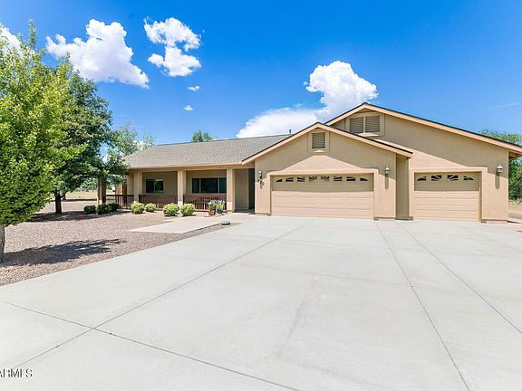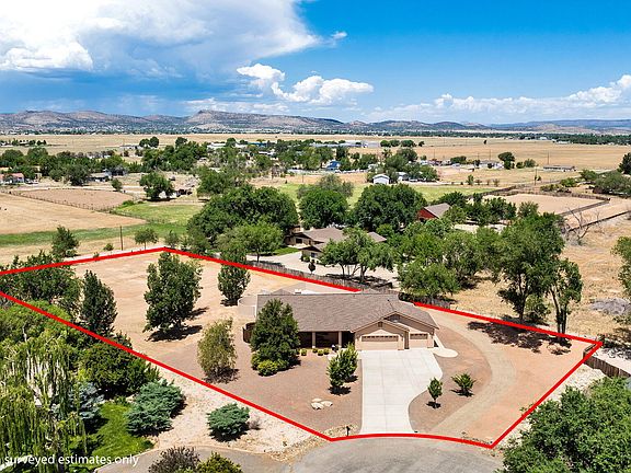 This spacious 2,098 sq ft ranch-style home features a split floor plan with 4 beds and 2 baths and a view of Granite Mountain. It's situated in a quiet cul-de-sac on a paved street with city water and natural gas. The property boasts over 609 sq. ft. of covered porches and over 1200 sq. ft. of block-fenced open patio for outdoor entertaining and relaxation. The kitchen is equipped with new appliances, hickory cabinets, a gas stub for the stove, and all appliances are about 3 yrs old. 3-car garage with a 220 outlet and dedicated power for an extra refrigerator or freezer. The professionally designed landscaping includes drip-irrigated mature trees, flowers, and shrubs. The neighborhood is highly desirable with only 16 lots. This is a must-see.