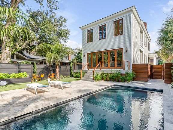 The exquisite, down-to-the-studs complete renovation of this 1920s home represents theperfect combination of preserved historic architecture with an appealing contemporary flaircertain to attract the most discerning buyer. Ten-foot ceilings, gracious sunlit formal roomswith fireplaces (stubbed for ventless gas), and an inviting wet bar and powder room off of thegracious central hallway, all set the stage for the kitchen/lounge area at the rear of the home.The kitchen/ lounge area boasts custom cabinets flanked by a large center island with anoversized House of Rohl stainless steel sink and Faucette, a 48-inch sub-zero refrigerator, a 48-inch wolf range, and a Cove dishwasher.A grand custom mahogany bifold door built by well- known manufacturer, Millwork Artisans, opens across the entire rear of the home, offering unobstructed access to the entertaining deck, garden, and pool. On the second level, there are two primary bedrooms with walk-in closets and 2 additional bedrooms. The primary bedroom and bath located at the rear of the home are lined with contemporary mahogany windows offering unparalleled views of the private garden and saltwater pool. Each bedroom has a connecting private bath complete with marble, custom cabinets, and Victoria and Albert basins. Three of the four baths have oversized walk-in showers, with the fourth offering a tub. The generous laundry closet is equipped with an Electrolux washer and dryer, with tile flooring from Porcelanosa. Additional storage is offered in the attic area via a pull-down stair ladder. The stately front porch paired with the rear garden, salt pool, and contemporary travertine deck offer endless opportunities for entertaining. The smart custom mahogany enclosures at the end of the driveway provide concealed storage for garbage containers, pool equipment, and general miscellaneous items Located in one of the most desirable locations downtown, Hampton Park Terrace, is just a short walk away from Hampton Park and some of Charleston's favorite culinary haunts and wine bars.