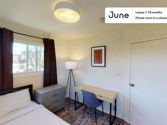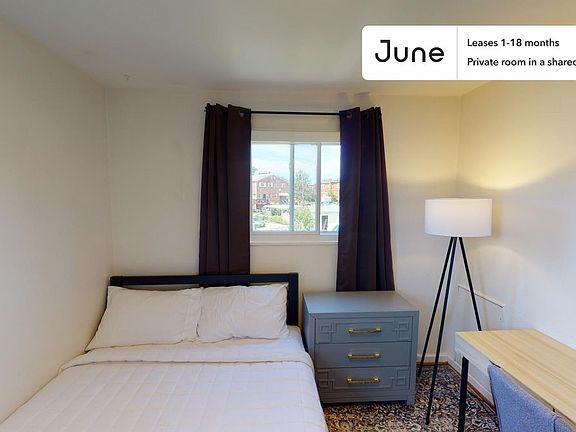 This Queen room in Fort Totten is available on a 12 month lease or a flexible short term (31 to 364 days) lease. You pick your custom start and end date. Monthly rent rate is determined by furnishing preference, move-in date and move-out date. Speak to a June representative for recommendations on the best stay duration for the lowest rate.