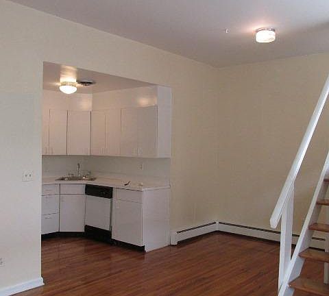 WHAT A DEAL! Great one bedroom, lovely kitchen, dishwasher, opening into a living/dining area, extremely tall ceilings adding charm, very sunny rooms, two nice sized closets, comfortable bedroom, hardwood flooring throughout and laundry on premises. PLUS A SMALL LOFT AREA PERFECT FOR STORAGE. NO FEE! NJ PREEMINENT PROPERTIES LLC LIC RE BROKER