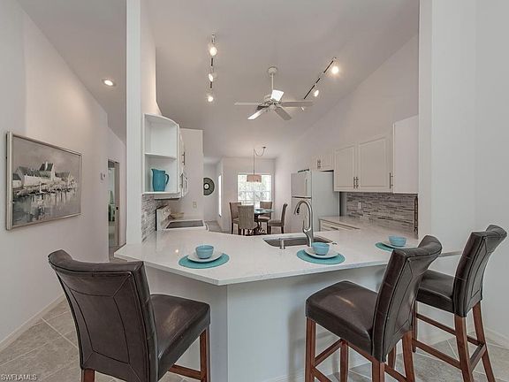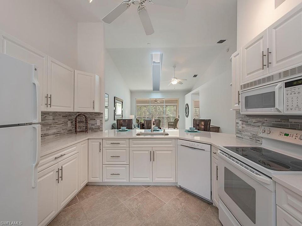 C.17449 - Feels Like New! Coastal living w/beautiful E Lake Views from living & M/suite. End Unit w/3 bed, 2/baths and ATTACHED GARAGE! Feel the energy of natural light the minute you walk in. (New Skylight) The Cook will love the NEW beautifully appointed kitchen w/ Quartz counter tops & tiled backsplash, New cabinet refacing & hardware w/under mounted S/S sink and faucet. Open view to dining w/ flowing diagonal 19 1/2 in. tile throughout living/bath area w/carpet in bedrooms. Refreshingly painted "Neutral" throughout. Plenty of storage w/ walk in closet in M/Suite, new Quartz counter tops w/hardware & faucets in both bathrooms, new "Kohlers" commode in guest bath. Elect hurricane shutters on lanai w/Newer A/C 2017 & water heater 2007. New Tile roof completed 3/2020. The Retreat is a low density community featuring a man-gated entrance with back entrance of Vanderbilt for residents only.Scenic walkway with wooden bridges along with wildlife estuary that winds along miles of bike and jogging paths. Short distance to our beautiful white sandy beaches at Vanderbilt,Bonita or Wiggins State Park. Minutes to"Mercato".