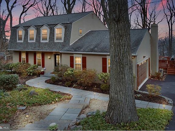 Stunning two-story colonial with designer touches in all rooms, over a half an acre on a quiet tree lined cul-de-sac. Follow the new flagstone path with landscape lighting to the covered glass-paned front door then into the foyer with hardwood floors and wonderful iron spindles on the staircase. The large sunny formal living is open to the dining room that has recessed lighting in addition to the chandelier. The up-to-date kitchen features custom wood cabinets, granite counters, tiled backsplash, stainless steel appliances including a 5-burner gas stove and wine fridge. The spacious island has some open storage shelves on one end, a wine-rack on other end and counter seating so the cook is always part of what is going on. The custom touches go on and also include a slider to the spacious deck for al fresco dining and grilling. What a great multi-level space to entertain and feel like you are in a tree house. The rest of the main level has the large family room with a huge slider also to the two-level deck, a wood burning brick fireplace raised hearth, the powder room with Kohler pedestal sink and entrance into the 2-car garage boasting an epoxy floor. Upstairs is the master suite with en suite bathroom with a unique open leg vanity featuring double sinks and beadboard wainscoting. There are three additional bedrooms, one of which is currently being used as a large his and hers master closet, an updated hall bathroom and the laundry room with LG high-efficiency washer/dryer right where all the wash is generated. The walk-out finished lower level has a second family room, card room, plenty of storage, four windows that provide tons of light and access to the yard. There is also an electric fence to keep puppies safe. Wonderful location close to all the major roads, and the shopping and dining that Wayne and King of Prussia have to offer. Welcome home!