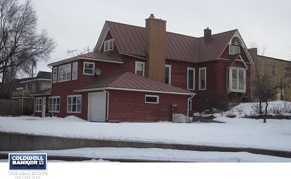 Historic home is the heart of Wild Rose. Dignified property full of potential. Features a wrap-around porch, ornate trim, terraced yard, metal roof, & attached & huge detached garages. Home has 3Br, 3Ba, firepl, & ample room for office space. Located adjacent to Roberts Park on the Wild Rose pond. Home has had extensive water damage which has been cleaned up. It will require extensive re-modeling.