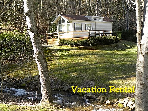 VACATION / WEEKLY / SHORT-TERM RENTAL What a cute spot for your mountain vacation. This Park Model overlooks McClure Creek in the Lake Logan area of Bethel near Sunburst. The home has one bedroom and one bath with fully equipped kitchen. The bedroom has a queen size bed along with a loft sleeping area with additional twin bed. There are decks to enjoy the peaceful wooded setting and the rushing creek. Central air conditioning. Sleeps 4. Application/Rental ProcessCLICK HERE