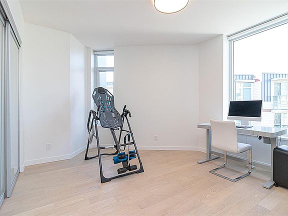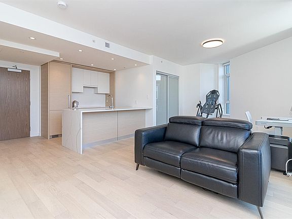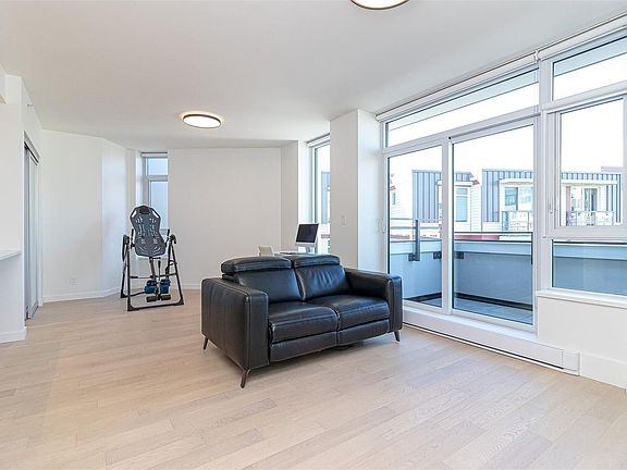 Welcome to Capital Park Residences! One Bedroom plus Den Unit! Master-plan community brought to you by award winning Concert & Jawl Properties. Situated in the heart of Victoria's Historic Inner Harbor, take advantage of the lifestyle presented: steps to downtown, Fisherman's Wharf, Red Barn Market, Good Earth & Discovery Coffee! Rarely do resales come available & its obvious why once entering this immaculately kept 1Bed+Den & 1Bath home. This executive 725 sq/ft TOP floor unit will surely impress. Enjoy a luxurious kitchen w/a quartz waterfall island & backsplash, integrated Bosch apps, custom built-ins & beautiful Cabinetry. A bright, open Floorplan is highlighted w/large windows (& custom Phantom screens) & a generous patio overlooking the common courtyard. A Den w/built-ins is perfect for that home office or young ones. An elegant cheater Ensuite showcases in-floor heating & a custom shower & medicine cabinet. Bonus amenities: Gym, Serenity Lounge, 1Parking, Storage & bike storage!