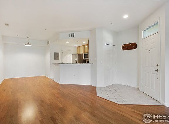 Light filled open floor plan with wood flooring, stainless appliances, granite counter tops, large walk-in closet, and bonus study area with glass french doors! Main floor unit with large enclosed patio, A/C, assigned under ground parking and additional storage. Wonderful community with club house, pool and gym. Terrific location, close to shopping/amenities, commuting routes, bike paths, Colo. Athletic Club, and easy access to CU & RTD Park & Ride on HWY 36. This is great place!
