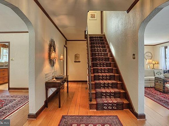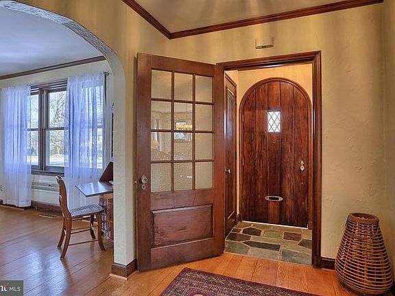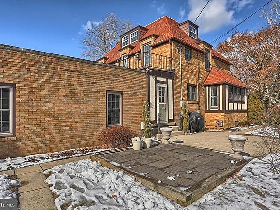 This historic home was originally built in 1932 for the owners of Fedden Brothers Inc., a hoisery mill located in Shillington. This enchanting brick Tudor home is offered for the first time in 27 years and is rich in architectural details. Warmly inviting you in to explore more, is the arched wood front entrance door, which leads to a second door with 12 panels of beautifully textured glass, opening into a center hall with wood flooring and a custom rug. Flanked on both sides by an oversized dining room and living room, both rooms feature wide planked wood flooring, crown molding and arched entry ways. The very large living room boasts a hand carved original wood mantle and access to a conveniently located covered porch with slate flooring, a stained bead board ceiling, a swing and awnings for privacy. The kitchen, was completely remodeled and expanded. It features custom oak cabinets by R & J Kitchens, corian counters, custom arched oak wood double door pantry with rod iron fixtures, wood exposed beams, an exposed brick wall, a wall gas fireplace, (that will work even if power goes out), a center island, a 5 gas burner stove, a warming drawer and access to both the garage and a nice size side yard with patio. Just off of the kitchen is a powder room. The 2nd floor features a main bedroom with an on-suite bathroom with a full surround custom tiled shower and a walk-in closet. There are 2 additional good sized bedrooms on this floor, both with walk-in closets, one with a custom built desk and a large amount of built-in drawers and cabinet space. Rounding off this floor is a full second bathroom with a multitude of storage space. The third floor features a large 4th bedroom, additional storage and a large cedar closet. The walk-out lower level consists of a bar area, a living area with a gorgeous stone wood burning fireplace, a huge workshop/laundry area and a storage closet that was original used as a wine cellar and additional storage for canned goods. Additional fe
